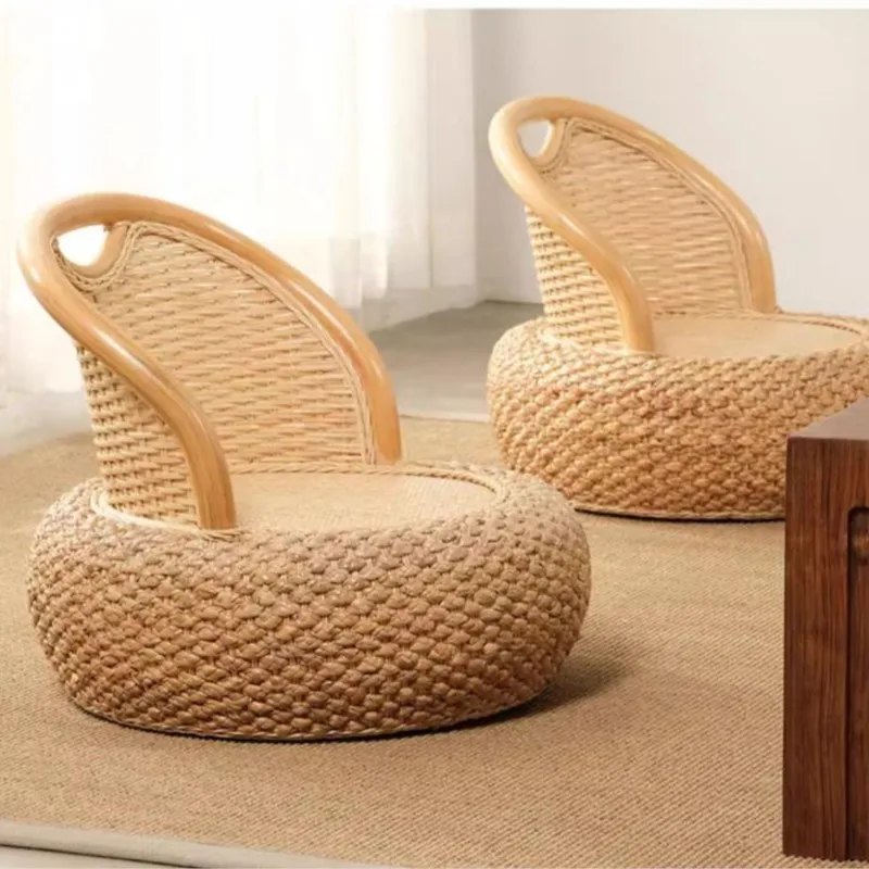 Japanese Pouf Rattan Futon Stool – Lazy Chair with Backrest for Balcony & Living Room